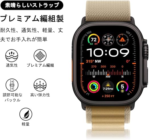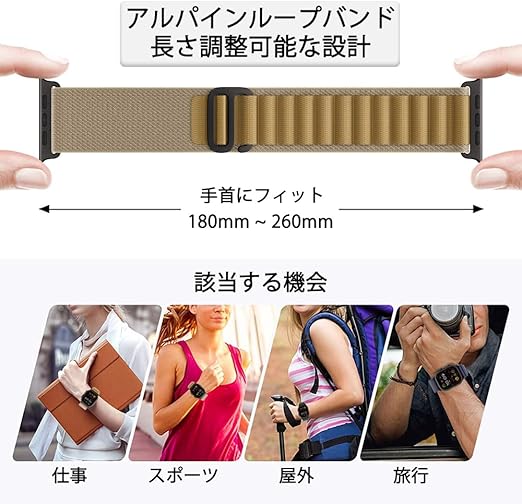 Aizgalxor アルパインループ バンド 対応 Apple Watch Ultra 49mm 46mm 45mm 44mm 42mm(Series 3/2/1)、スポーツ編組交換用バンド 対応 iWatch Ultra 2/Series 10/9/8/7/6/5/4/3/2/1/SE a