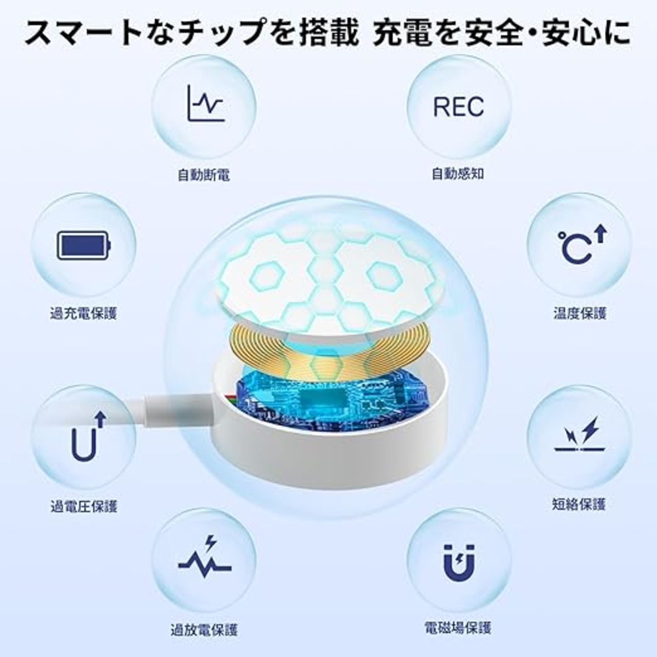 「効率的で安全な充電を実現」 知能チップ搭載watch 充電器は過充電、過電流、短路や過熱などのマルチ保護機能を備えており、安全な充電環境と快適な充電体験を提供しています。充電中の場合、5V/1Aまたは5V/2Aのアダプターをご利用していただき、約2.5時間で満充電になります。