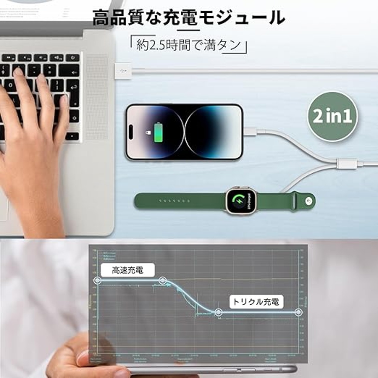 「磁気充電と2in1同時充電が可能」 弊社のアップルウォッチ 充電器はWatchの特徴に合わせて開発されたマグネっト式の磁気充電ケーブルです。つきまして、お使いのWatchをこちらの充電部に置いて強いマグネットで充電時の
