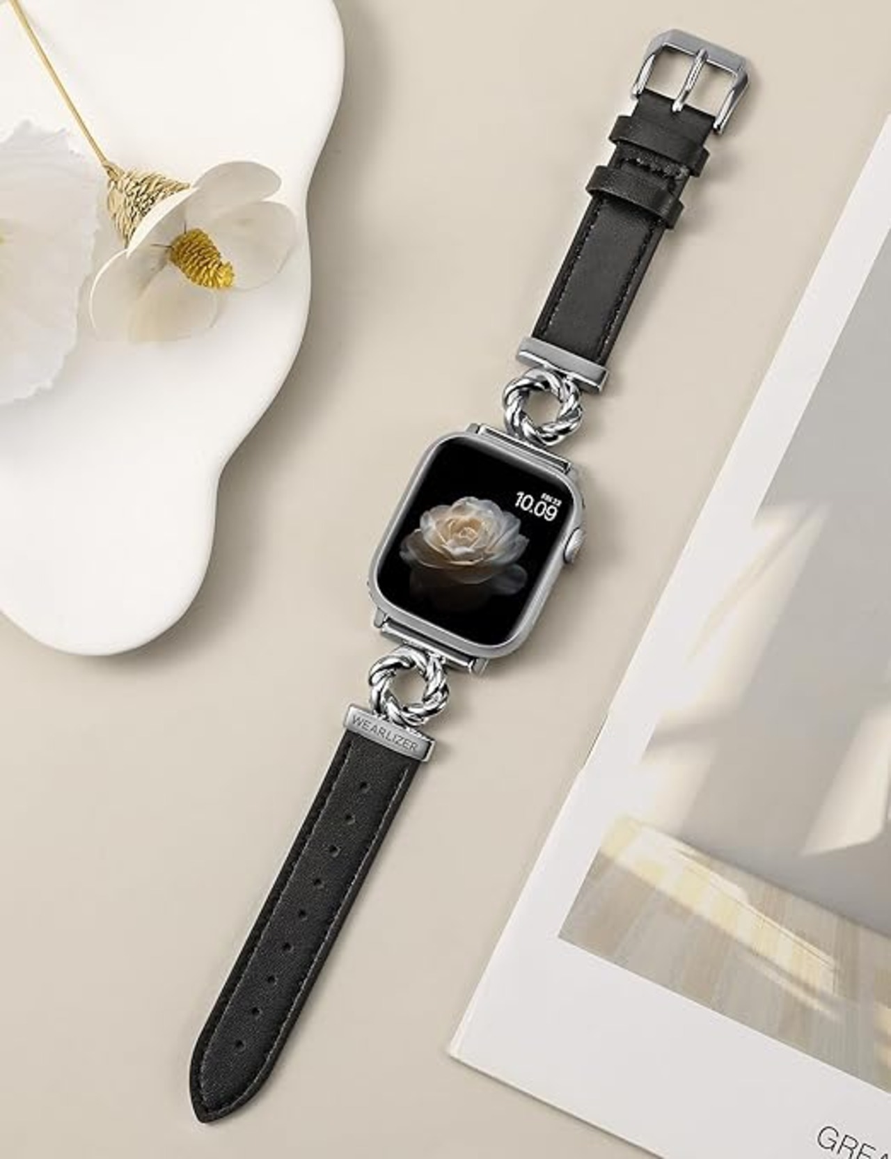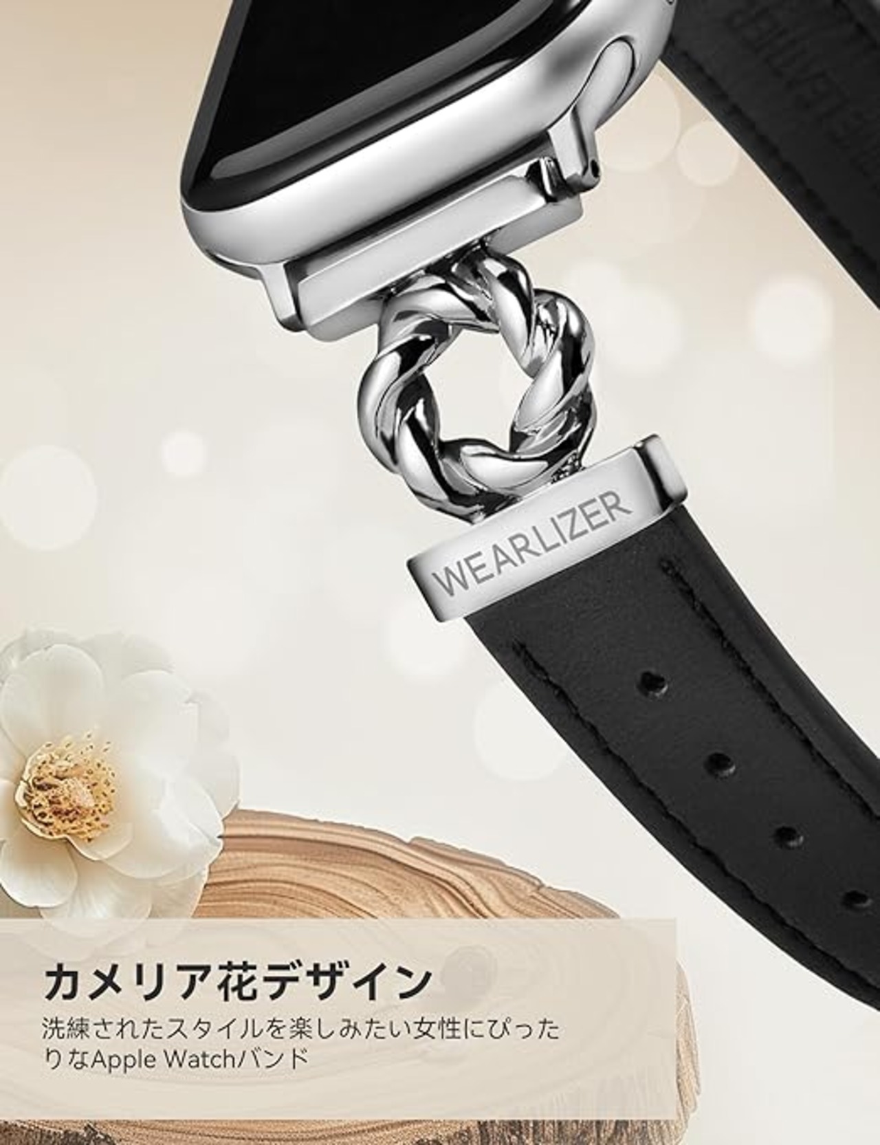 【エレガントなカメリアデザイン】カメリアの花にインスパイアされたデザインは、シンプルでありながらもエレガントな美しさを放ちます。クラシックでありながら、洗練されたスタイルを楽しみたい女性にぴったりなApple Watchバンドです。