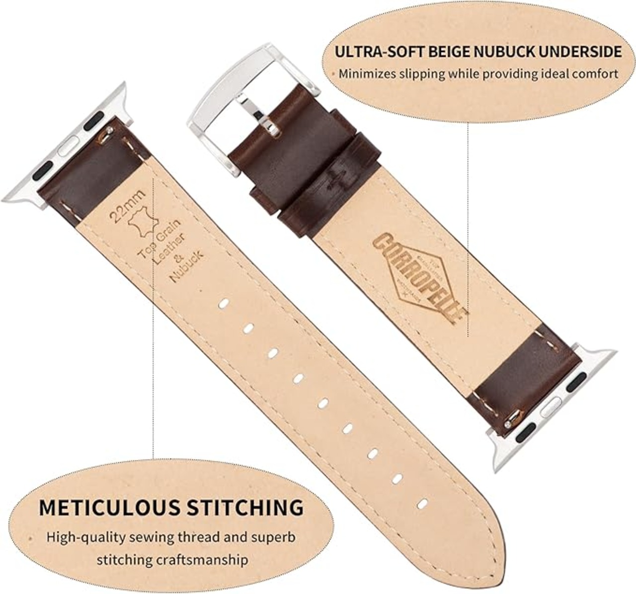 CORROPELLE 互換品 時計バンド Apple Watchー用 バンド レザー ベルト 49mm 46mm 45mm 44mm 42mm 41mm 40mm 38mm 高級 革 エレガント 交換ベルト コンパチブル iWatch シリーズ 10 9 8 7 6 5 4 3 2 1 SE2/1 Ultra2/1に全機種対応 男女兼用
