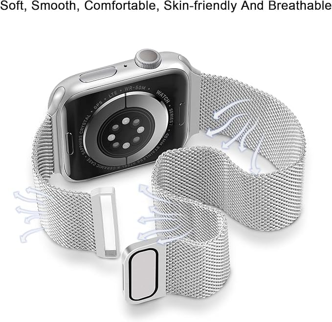 Anlinser コンパチブル Apple Watch バンド45mm 44mm 42mm 41mm 40mm 38mm、磁気クラスプ付きの調整可能なステンレススチールメタルバンドIWatchシリーズ8/7/6/5/4/3/2/1/SE に対応 a