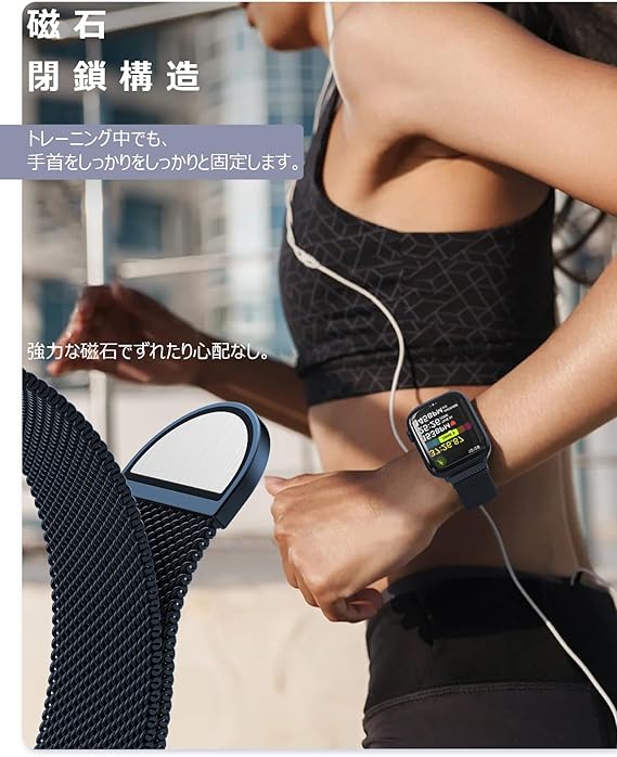 OULUOQI コンパチブル Apple Watch バンド 49mm 46mm 45mm 44mm 42mm 41mm 40mm 38mm アップルウォッチバンド マグネットクラスプ ステンレス留め金製 無段階調節 ベルト通気 Watch Series Ultra/Ultra 2/10/9/8/7/6/SE/5/4/3/2/1 に対応 a