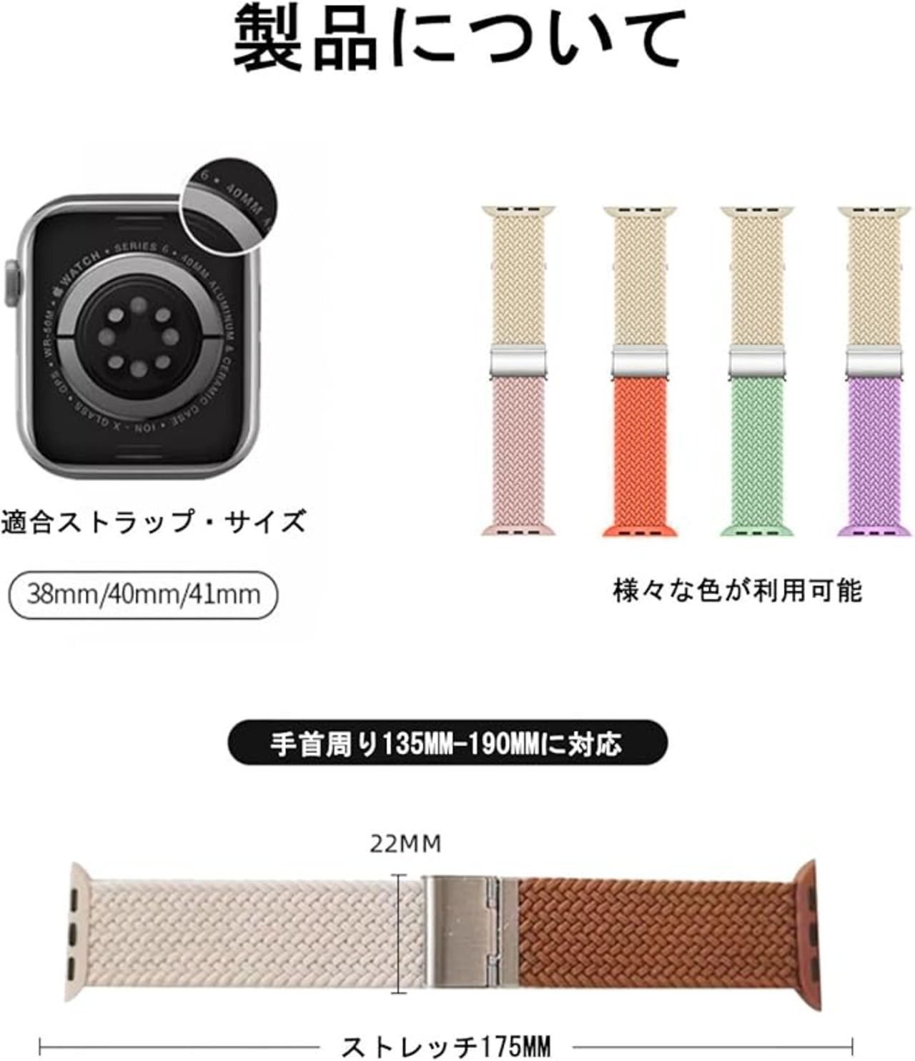 apple watch バンド 編み込み カラーコンビネーション 38mm 40mm 41mm 交換ベルト アップルウォッチ バンドナイロン製カラビナストラップ 伸縮性 iWatch Series 9 8 7 6 5 4 3 2 SEに対応 調整可能 柔軟 通気 a