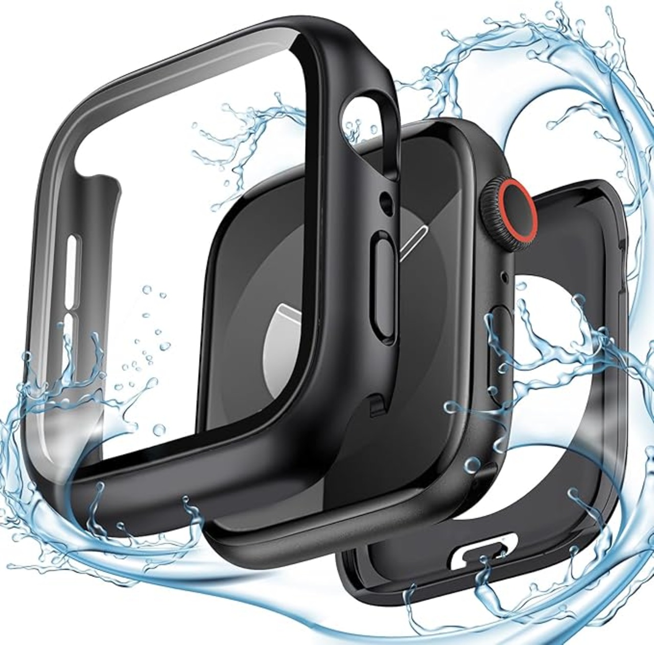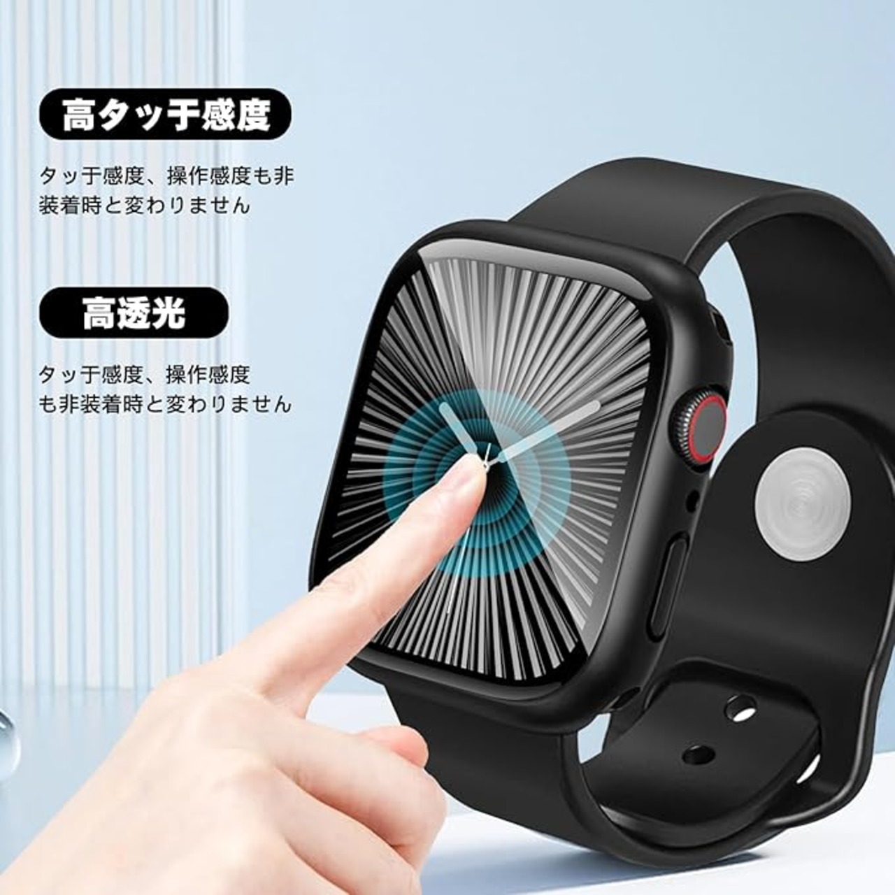 【360度防水設計】 CAERMA for アップルウォッチ カバー Series 11/10/9/8/7/SE3/SE2/SE/6/5/4 44mm 超薄型 for Apple Watch カバー 2in1防水 PC素材 硬度9H強化ガラス 高透過率 指紋防止 耐衝撃 全面保護 for Apple Watch ケース ブラック a