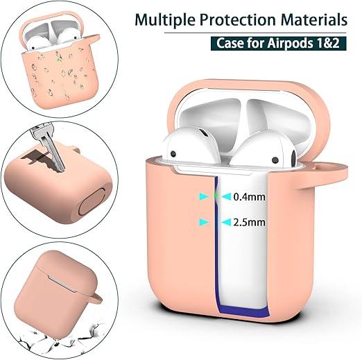 R-fun AirPods ケースカバー 対応 ソフトシリコン保護カバー キーチェーン付き レディース メンズ Apple AirPods 第2世代 第1世代 充電ケース フロントLEDライト付き サンドピンク a
