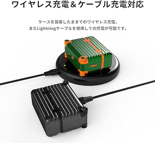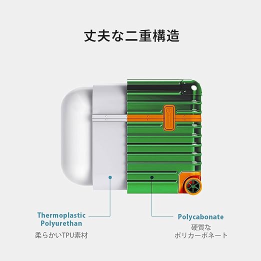 miak AirPods ケース キャリーケース スーツケース ハードケース エアーポッズ カバー ワイヤレス充電 Qi 対応 ポリカーボネート TPU ハイブリッド MA20641 (グリーン)【国内正規品】 a