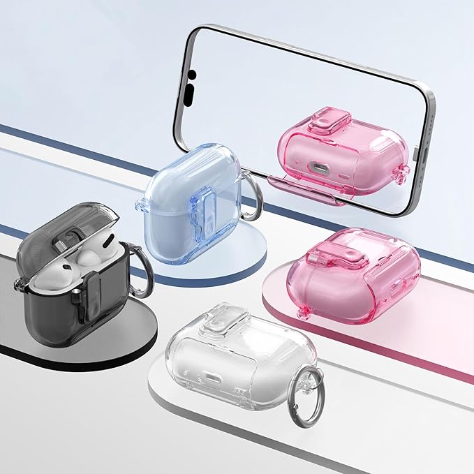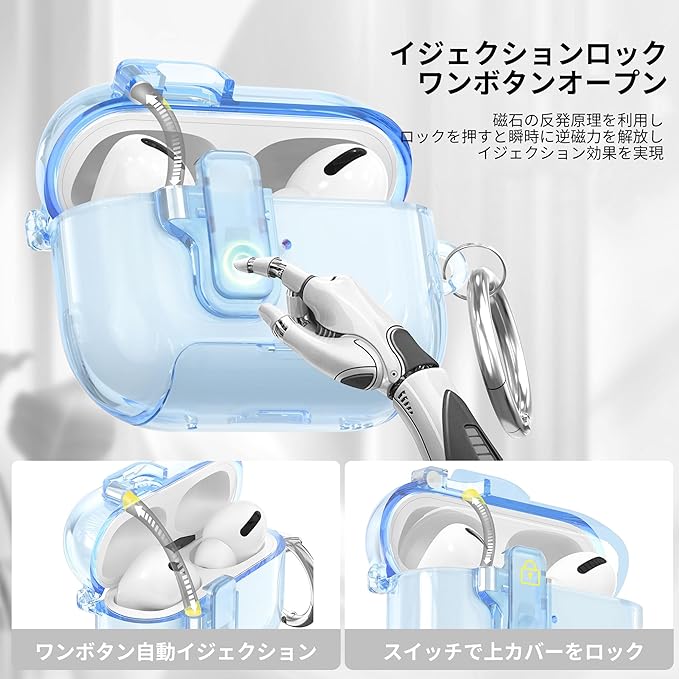 【2025年度 先行発売】YXHH新登場 AirPods Pro 3 用 ケース 自動スナップスイッチ付き 全面保護カバーTPU 耐衝撃 収納 軽量 撥水 防塵 キズ防止 充電対応 紛失防止 旅行 カラビナ付き AirPods Pro 第3世代 対応 保護ケース(透藍) a