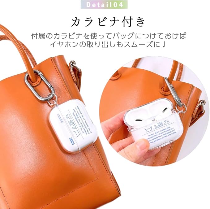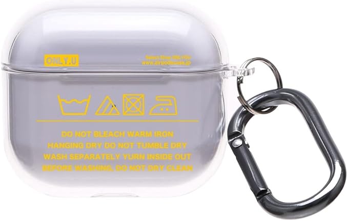 ONLYOU Airpods3 用 ケース おしゃれ 韓国 PC 透明 クリア ランドリー 洗濯 タグ カラビナ エアポッド エアポッズ プロ カバー イヤホンケース レディース メンズ (AirPods(第3世代) イエロー) a