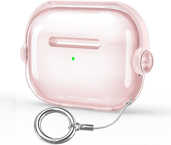 HEIGKOIK AirPods Pro2 ケース クリア AirPods Pro 第2/1世代 2023/2022/2019 用 TPU 保護ケース ロック付き LED可視 耐衝撃 ワイヤレス充電対応 カラビナ付き スタンド機能付き(クリアピンク) a