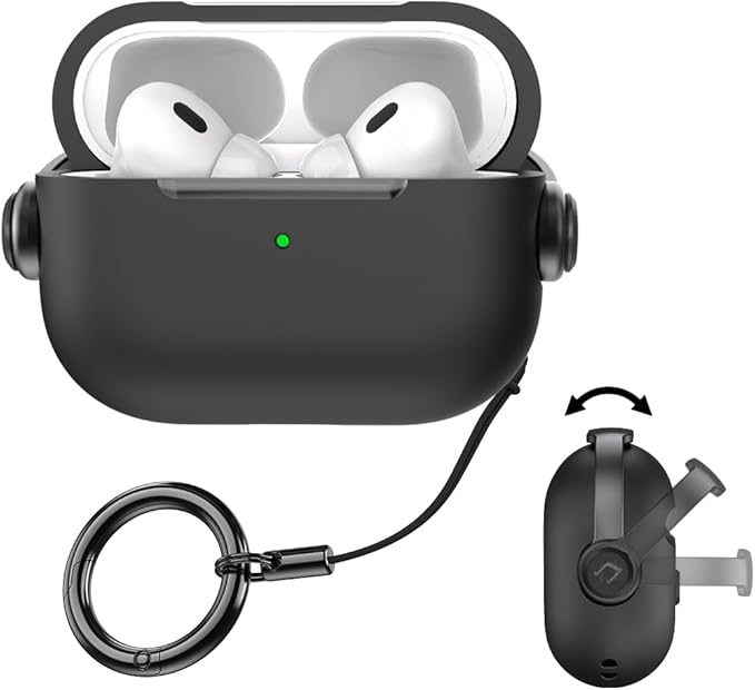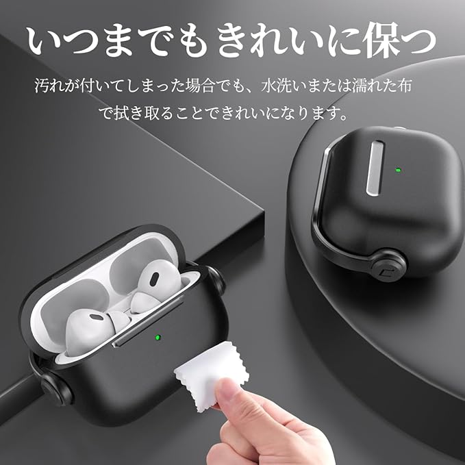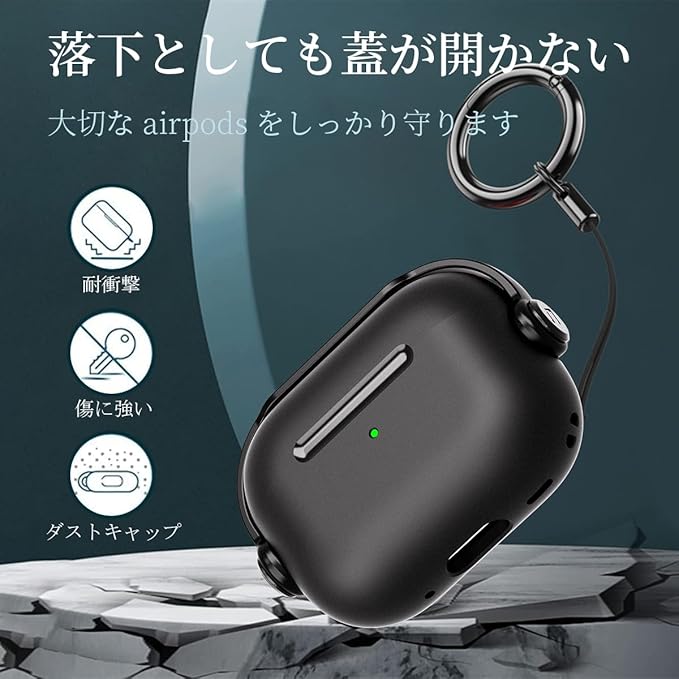 HEIGKOIK AirPods Pro2 ケース ロック付き AirPods Pro 第2/1世代 2023/2022/2019 用 TPU 保護ケース LED可視 耐衝撃 ワイヤレス充電対応 カラビナ付き (ブラック) a