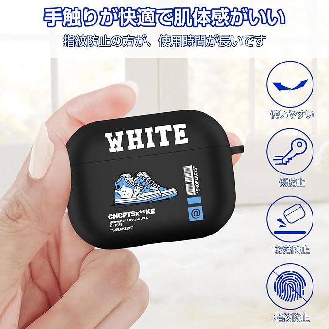 AirPods Pro 対応 ケース スニーカー TPU ケース 全面保護 エアーポッズ プロ カバー 軽量 小型 かわいい 靴 AirPods Pro 対応 カバー 耐衝撃 防塵 紛失防止 カラビナ付き(white-blue-black) a