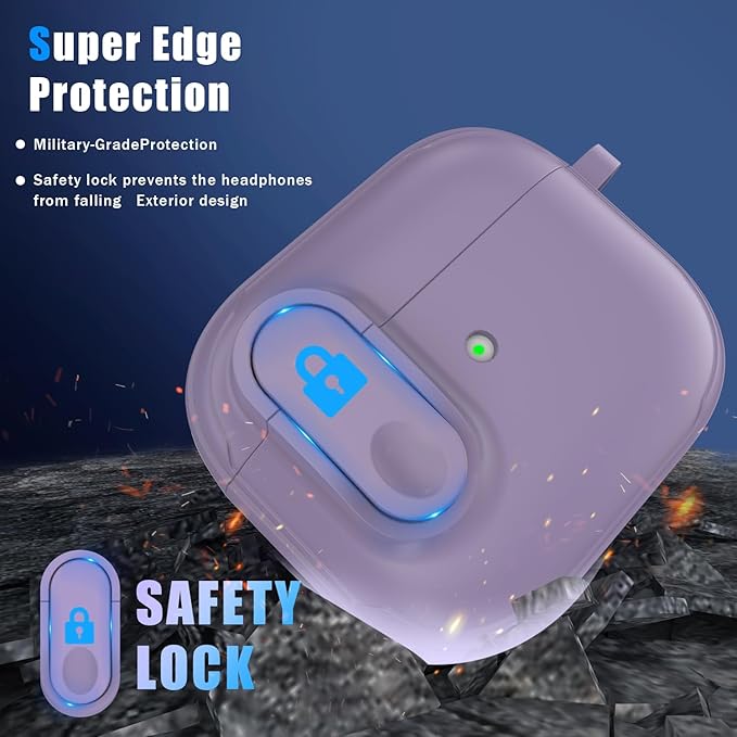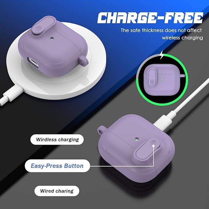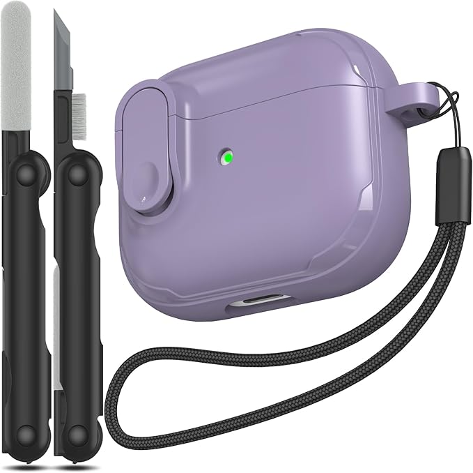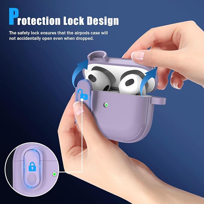 RFUNGUANGO for AirPods 3 Case Cover, Anti-Fall Lock Design, Powerful Drop Protection, TPU Skin-Friendly Texture for Apple AirPods 3rd Generation Charging Case(2021)-FG Purple a