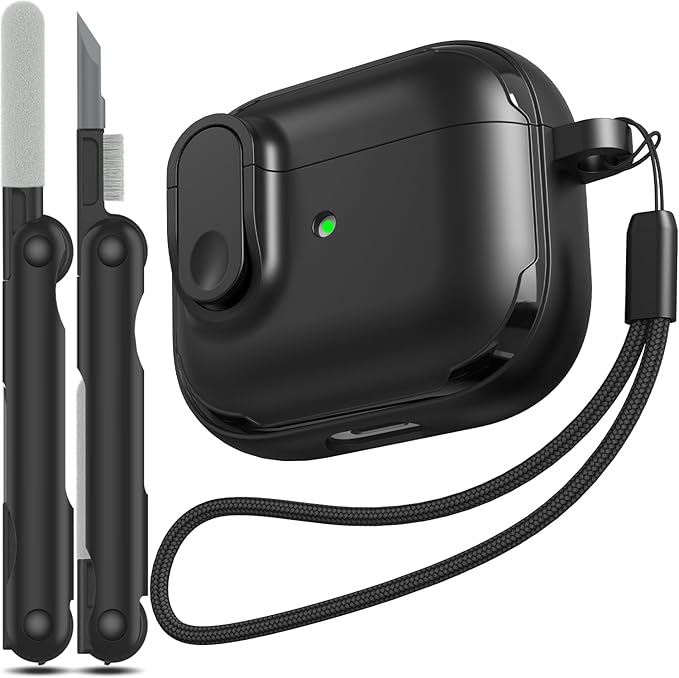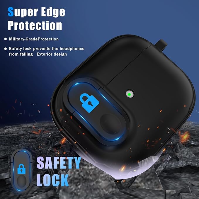 RFUNGUANGO for AirPods 3 ケースカバー、落下防止ロックデザイン、強力な落下保護、TPU 肌に優しい質感 Apple AirPods 第 3 世代充電ケース (2021) 用 - FG ブラック a