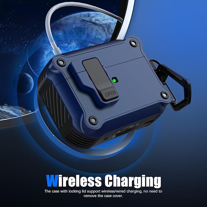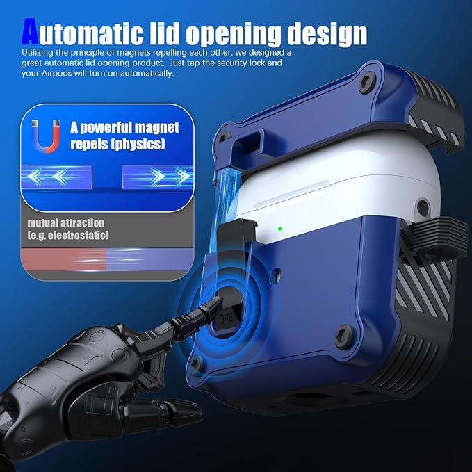 【ユニークなセキュリティロックと自動ポップアップ】アップグレードされたセキュリティロック設計により、開閉が簡単になります。「OPEN」ボタンを押すと、ケースの上部が自動的に開きます。 AirPods