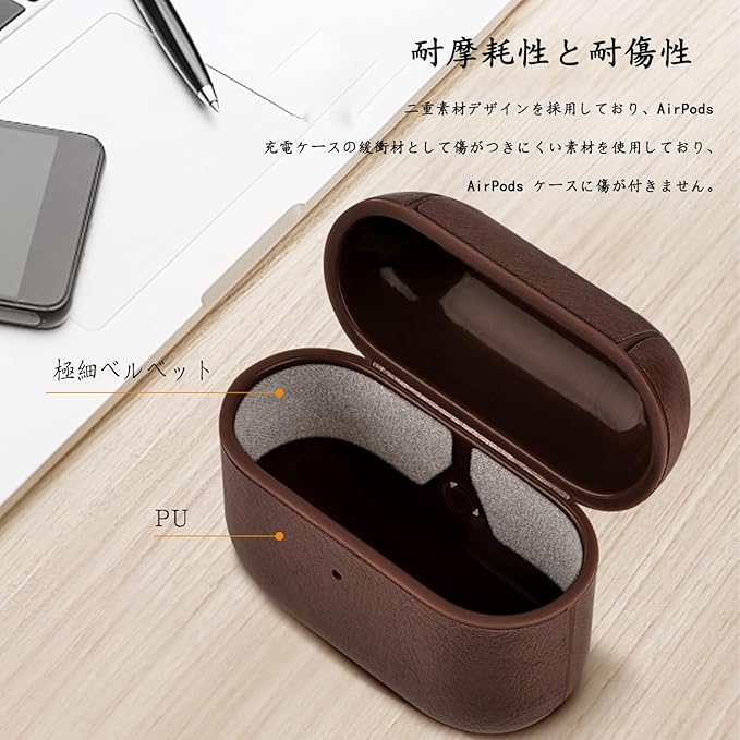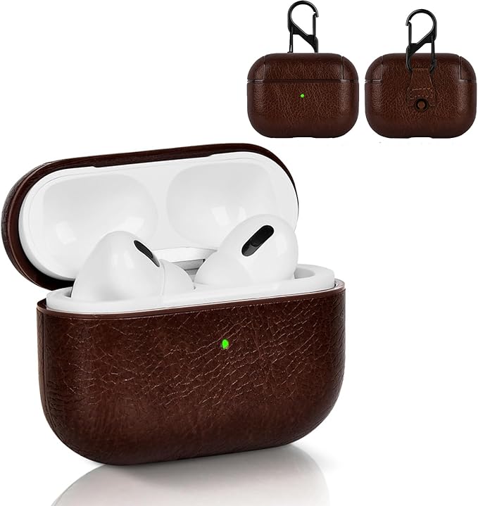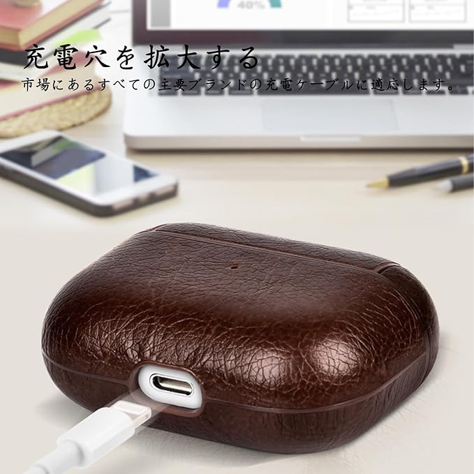YAODLE AirPods Pro ケース 第2世代 (2023/2022) エアーポッズプロ ケース 本革 イタリアンレザー エアーポッズプロ用 カバー 高級 PU革 装着充電可能 LEDライト可視 ワイヤレス充電対応 持ち運びに便利(ダークブラウン) a
