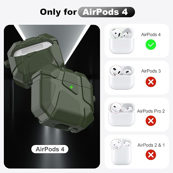 【対応機種】:このケースはApple AirPods 第4世代 (2024)/AirPods 4 アクティブノイズキャンセリング搭載 (2024) (USB-C) 専用です。(AirPods 1/2/3 Pro/Pro2には対応しておりません。) 注意:AirPods 第