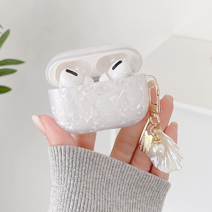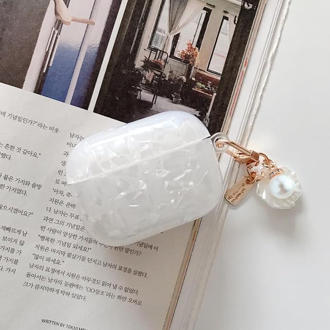 FINON for airpods pro2 用 ケース airpods pro 第2世代 用 ケース かわいい 可愛い カラビナ ストラップ キラキラ おしゃれ (ホワイト) a