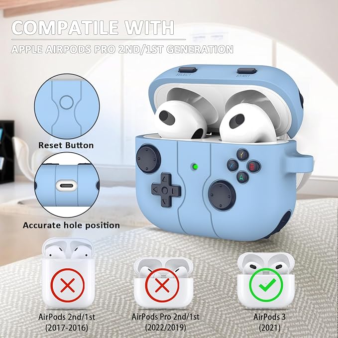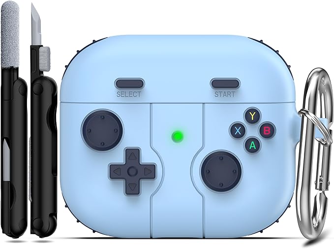 RFUNGUANGO AirPods 第 3 世代ケースカバー キーチェーン付き、ゲームプレーヤーデザイン、子供、ティーンエイジャー、女性、男性向け、AirPods 第 3 世代充電ケース用ソフトシリコンケース - ブルー a