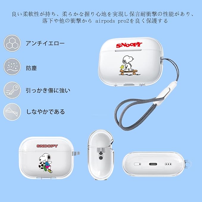 【上質な素材】本AirPods Pro2専用 ケースは透明度の高い高品質TPUで製作されるので、表面は非常に滑らかで、埃、水後、指紋など残されにくいです。全くかさばることなくお使いのAirPodsを落下、衝撃、擦り傷からしっかり保護します。
