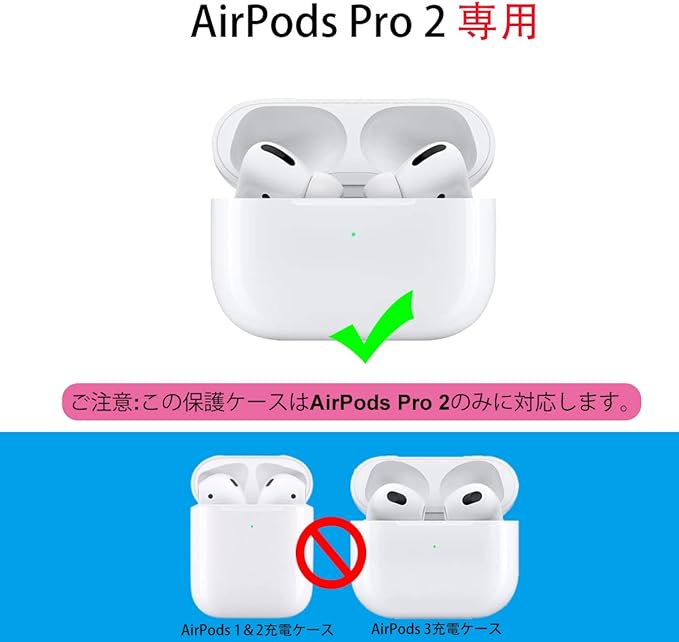 【装着充電可能】このシリコンカバーは、AirPods Pro2充電ケースに完全にフィットし、充電ポート用の穴があるのでケースを外すことなく直接ケーブルで充電できます。このカバーを装着したままでもワイヤレス充電ができます。 フロントLEDインジケーターはワイヤ