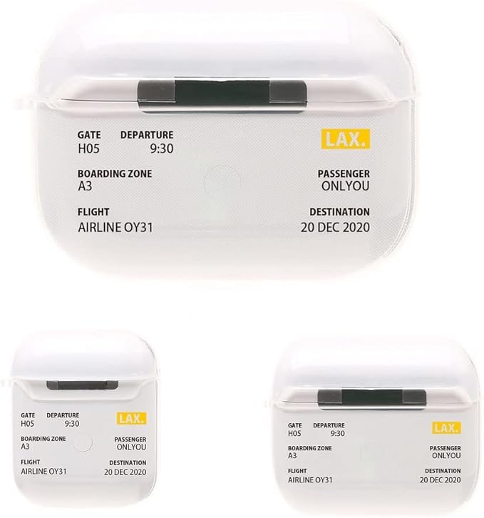 ONLYOU Airpods3 用 ケース おしゃれ 韓国 TPU チケット 航空券 シンプル クリア 透明 エアーポッズ プロ カバー レディース メンズ お揃い イヤホンケース カラビナ フック (AirPods(第3世代) LOSANGELES) a