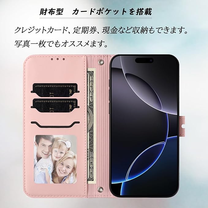 iPhone17Pro ケース 手帳型 iPhone17 Pro カバー あいふぉん手帳型 アイフォン 携帯ケース iPhonecase スマホケース スマホカバー 携帯カバー ストラップ付き カード収納 財布型 ベルトマグネット スタンド機能 かわいい 猫 耐衝撃 全面保護 (iPhone 17 Pro 対応) ピンク