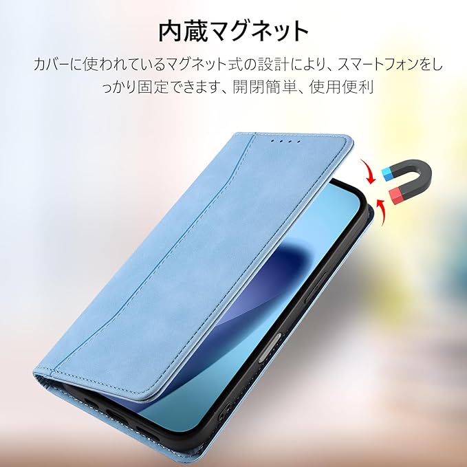 KWATUNG iPhone 17 用 ケース 手帳型 アイフォン 17 用 ケース 手帳型 おしゃれ あいふおん17用 手帳型ケース 肌感レザー 内蔵マグネット 耐衝撃 iPhone 17用 スマホケース 手帳型 カード収納 スタンド機能 全面保護 アイホン17 用 6.3インチ ライトブルー