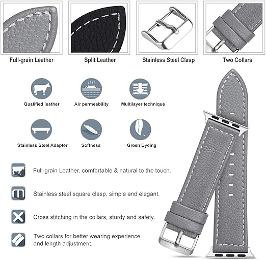 Apple Watch バンド アップルウォッチバンド Compatible with 49mm 46mm 45mm 44mm 42mm apple watch series11 10 9 8 7 6 5 4 3 2 1 SE SE2 SE3 Ultra3 Ultra2 Ultra バンド 本革レザー ベルト 交換バンド(グレー 49mm 46mm 45mm 44mm 42mm(S3/2/1)) a