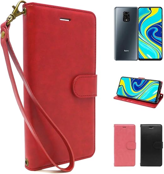 シズカウィル Xiaomi Redmi Note 9S 手帳型 ケース カバー シンプル ビンテージ ストラップ付 手帳ケース 1個入り レッド クイーン a