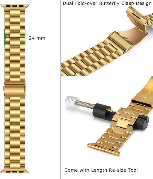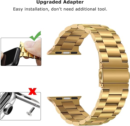 コンパチブル Apple Watch バンド 42mm (シリーズ10/11) 41mm 40mm 38mm プレミアムステンレススチールメタル交換バンド Apple Watch シリーズ 11 10 9 8 7 6 5 4 3 2 1 SE用 (ゴールド) a