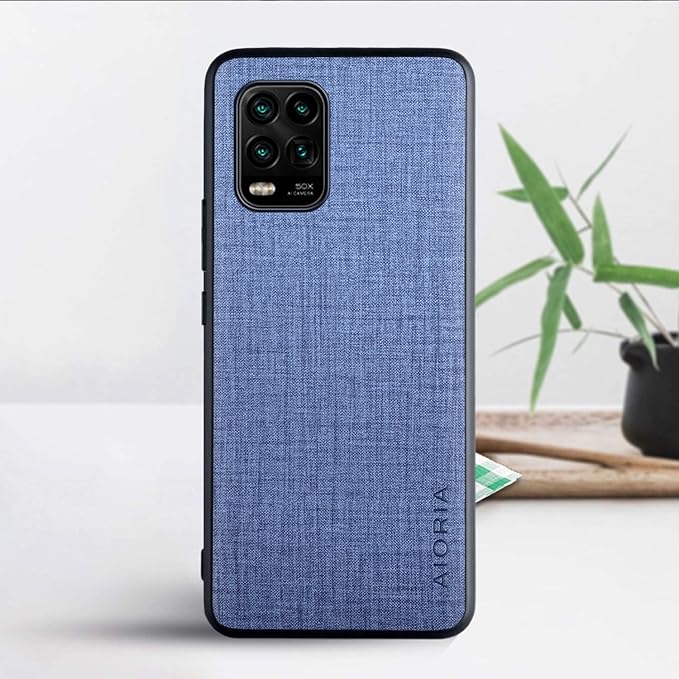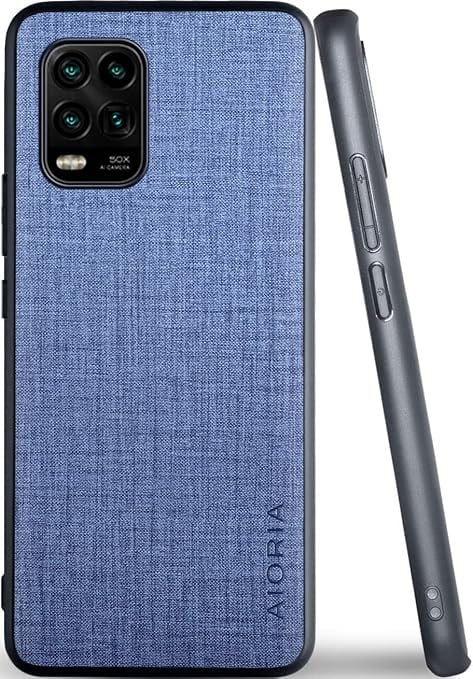 Aioria Xiaomi Mi 10 Liteケース 生地パターンレザー高級に保護純色スマホケースXiaomi Mi 10 Lite 5G (Blue) a