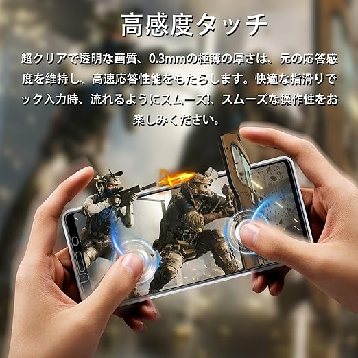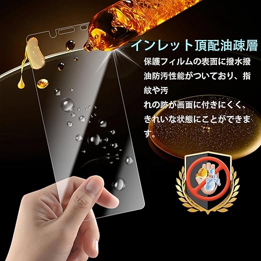 【旭硝子素材】:日本製旭硝子素材の採用、また硬度は業界最高レベルの9Hであり、カッタ一などの鋭利なものを当てたとしても損傷なく長らく使えます。気泡に悩まされることなく、より簡単に、より綺麗に液晶保護フィルムを取り付けることができます。技