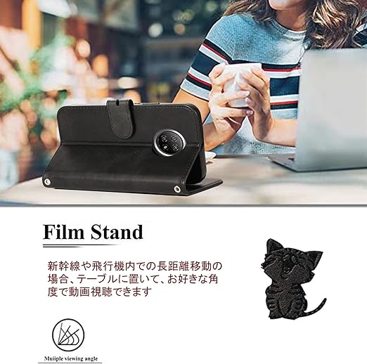 ❷機能性 4in 1: ①横置きスタンド機能:お好きな角度で動画鑑賞や読書などを楽しめます;②財布型:ケースの裏側に 3つのカードポケット, お札入れのフリーポケット一つ、名刺や定期券の収納に優れていて、