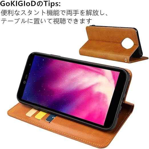 GOKIGIOD 適用 Redmi note 9t a001xm ケース 手帳型 PUレザー ストラップ 同梱 カード収納 スタンド機能 耐衝撃 Xiaomi シャオミ レドミ ノート 9t スマホケース 手帳 Redminote9t case カバー 財布型 内蔵マグネット 弱磁 ストラップホール 携帯カバー レトロ ライトブラウン a