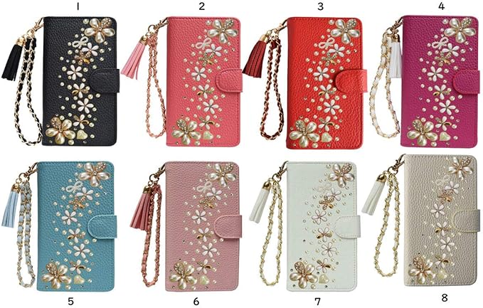 ★ケース特徴:マグネット開閉 ■カード収納あり■予備ストーン付き■動画鑑賞やデスクの上に置いて便利なスタンド機能、及びビジネスシーンや名刺など収納可能なカードホルダー付きです。一つ一つハンドメイドでストーンが取り付けられております。カメラ穴部分は機種ごとに開け、樹脂塗料にて仕上げてあります。留め具は