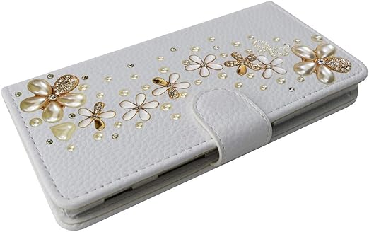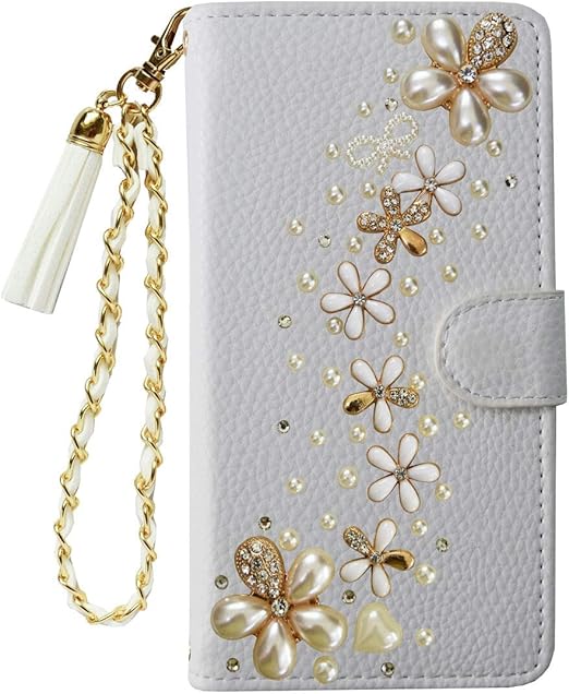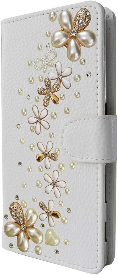 【Salon de M】Xperia 10 III SO-52B docomo SOG04 au softbank ケース 手帳ケース カバー 手帳型ケース スマホカバー ストーンカバー 鏡付きミラー ダイヤカバー PUレザー 携帯 おしゃれ 人気 花 PUTZ-20-2-7 ホワイト a