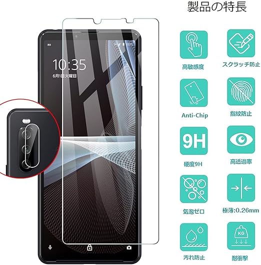 【対応機種】Xperia 10 III (SO-52B|SOG04) / Xperia 10 III Lite に特製ガラス保護フィルムとカメラフィルムです。高耐久性防汚のフィルムに特殊コーティングにより指紋や汚れが付きにくくなっています。超薄型保護フィルムは鮮明な99%の高透過率、自然な見た目です。