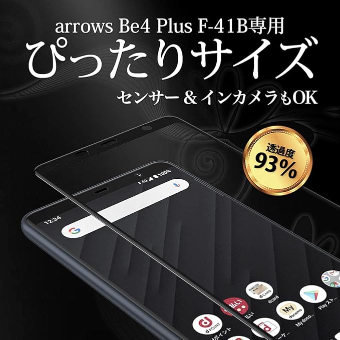 Hy+ arrows Be4 Plus arrows BZ02 フィルム F-41B ガラスフィルム W硬化製法 一般ガラスの3倍強度 全面保護 全面吸着 a