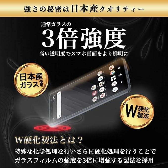 【W硬化製法で一般ガラスフィルムに比べ3倍の強度を実現】Hy+(ハイプラス) W硬化製法ガラスフィルムは特殊な化学処理を行うことで従来のガラスフィルムに比べ3倍の強度を実現。arrows Be4 Plus F-41Bの液晶画面を強固に保護します。