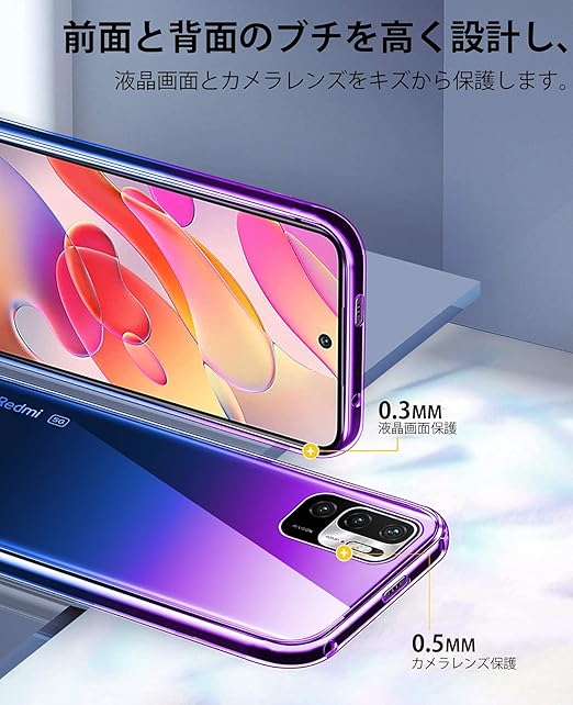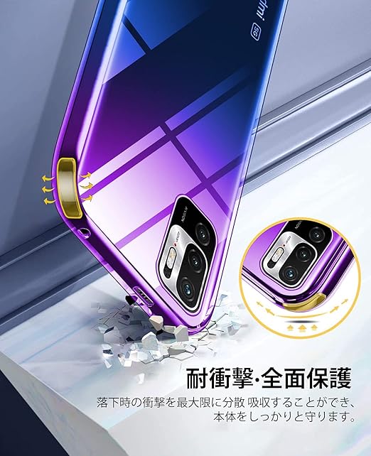 Xiaomi Redmi Note 10 JE ケース - クリア 薄型 TPU 耐衝撃 グラデーション色 ケース 指紋防止 ストラップホール付き 擦り傷防止 軽量 スマホケース Note 10 JE 専用 パープルブルー a
