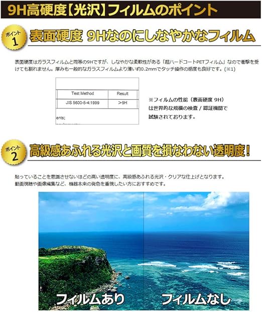 柔軟性があり、ガラスフィルムのように衝撃を受けても割れない『9H高硬度保護フィルム』