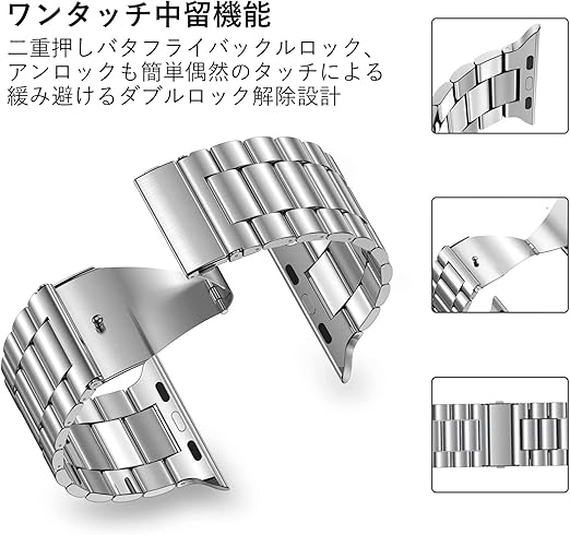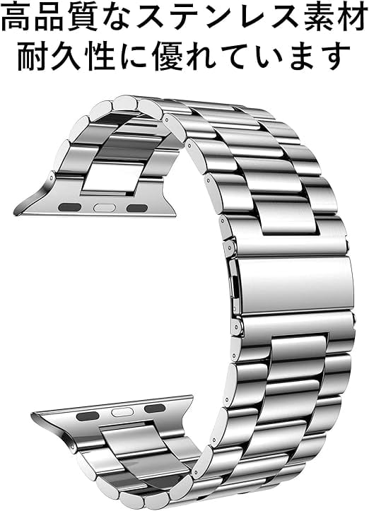【Apple Watch保護カバー+Apple Watchバンド】Apple Watchにぴったりフィットするケースと交換バンド一体化ステンレスバンドです。ほとんどの時計メーカーで採用されている3連タイプで、金属ブレスとしては一番オーソドックスなタイプになります。横9列になったコマを縦に繋ぎ合わせたブレスレットで、高い堅牢性が特徴です。