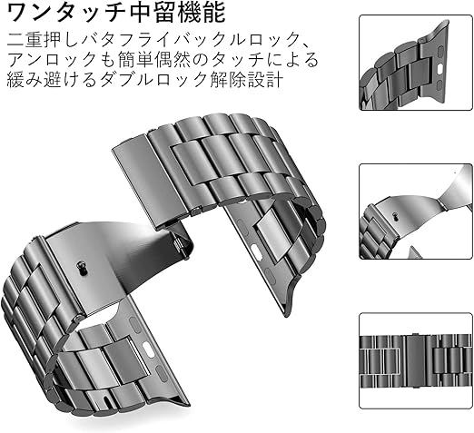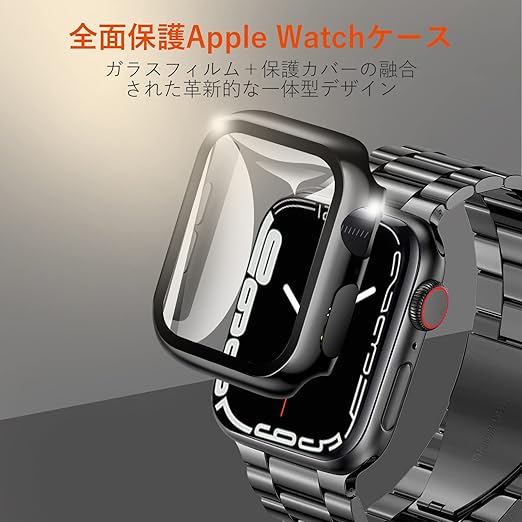 【Apple Watch保護カバー+Apple Watchバンド】Apple Watchにぴったりフィットするケースと交換バンド一体化ステンレスバンドです。ほとんどの時計メーカーで採用されている3連タイプで、金属ブレスとしては一番オーソドックスなタイプになります。横9列になったコマを縦に繋ぎ合わせたブレスレットで、高い堅牢性が特徴です。
