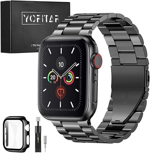 [YOFITAR] for Apple Watch バンド 保護ケース付き ステンレス製 Apple Watch Ultra 3/Ultra 2/Ultra/11/10/9/8/7/SE3/SE2/6/SE/5/4/3/2/1対応 iWatch バンド 長さ調整器具付き(41mm,ブラック) a