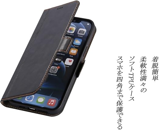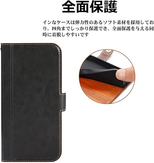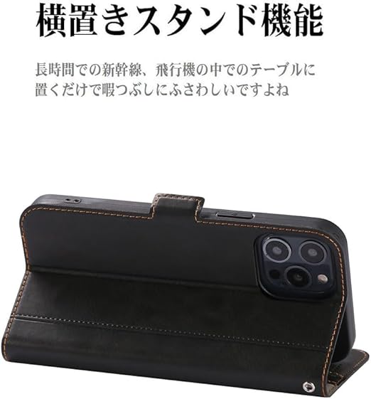 手帳型ならではの機能が満載 内側には二つのカード入れと、定期券やカードの収納に優れている 手帳型ケースです。横置きスタンド機能がつき、暇つぶしに楽々動画視聴や読書など楽しめます。