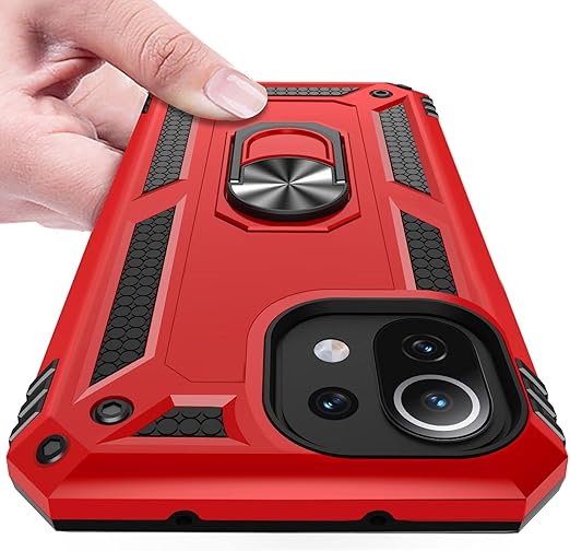 YULNCUZ Xiaomi Mi 11 Lite 5G ケース リング付き 耐衝撃 全面保護ケース 車載ホルダー対応 360°専用 衝撃防止 スマホケース Pc スタンド機能 散熱加工 薄型 軽量 耐衝撃 耐摩擦 TPU ケース 滑り防止 防塵 保護 ケース 黄変防止 取り出し易い 防指紋 Mi 11 Lite 5G ケース おしゃれ 手触り良い 携帯カバー 赤 YZ-X33 a