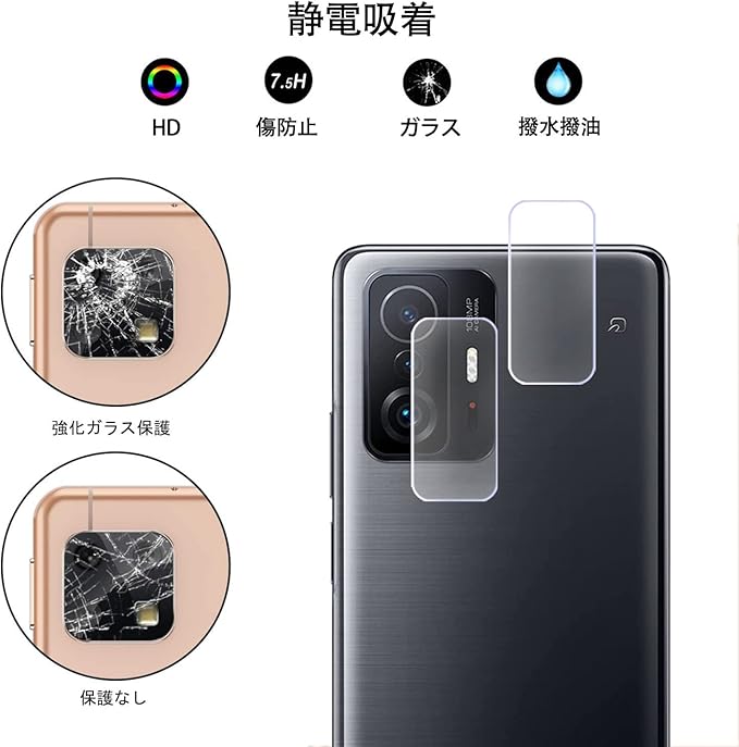 【対応機種】 FOR Xiaomi Mi 11T /11T Pro 用のレンズ保護フィルム+ガラスフィルム。
