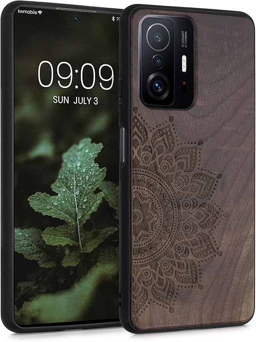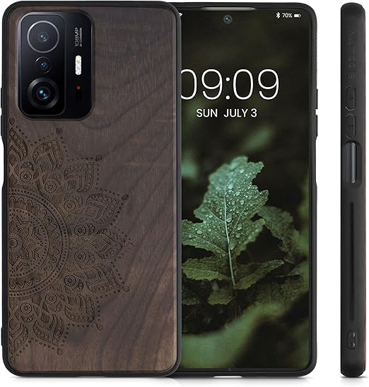 kwmobile スマホケース Xiaomi 11T / 11T Pro対応 ケース - 携帯ケース TPUバンパー ナチュラル 木製 ライジングサンデザイン a