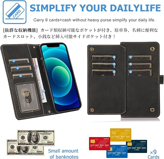 【ストラップ2本同梱】調節可能ショルダーストラップ一本が、可斜めがけ、可肩掛け&短いハンドストラップ一本が指掛け用と腕掛け用、どんなシーンでもお都合によりケースと最も相応しい組み合わせを作ることができます。携帯電話が紛失する恐れはなし、財布なデザインのハンドバッグは日常、平日、短距離旅行、アウトドアなどにとても向いています。
